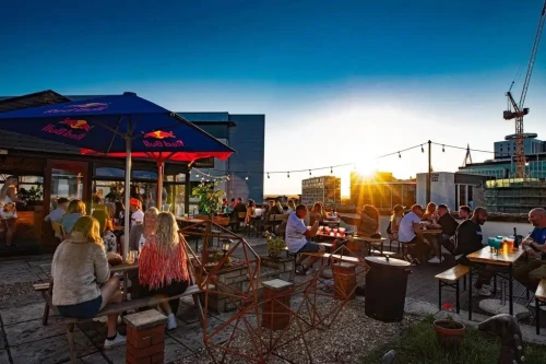 Nestled amongst the high-rise hotels and office blocks, over looking all of the Mill Lane madness, you'll find a hidden - rarely used- rooftop garden, perched above Jacobs Antique Centre. A secret oasis with views over the city centre and beyond. Once one of the tallest buildings in the area, now slowly being swallowed by bigger and bigger neighbours.